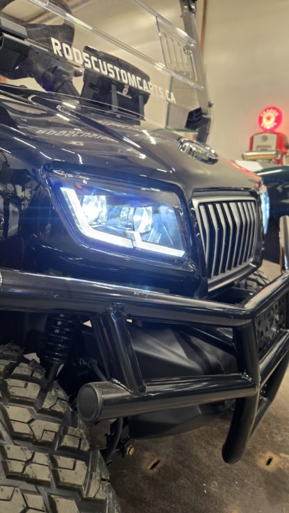 - LED automotive styled headlights, high beams, signal lights, brake/taillights