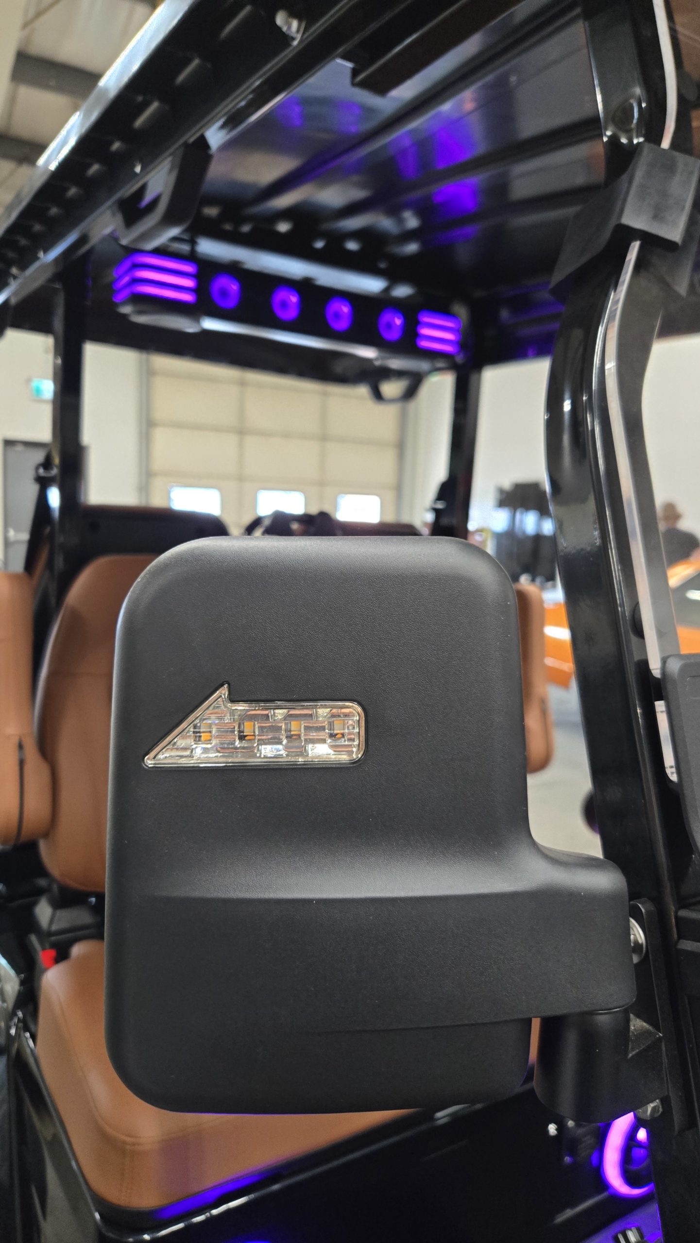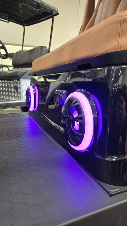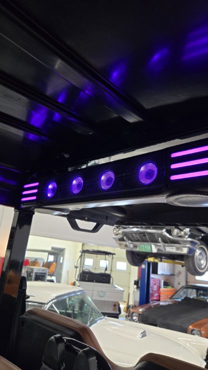 - Premium audio system with 8 high-fidelity speakers and party sound bar with color changing lights