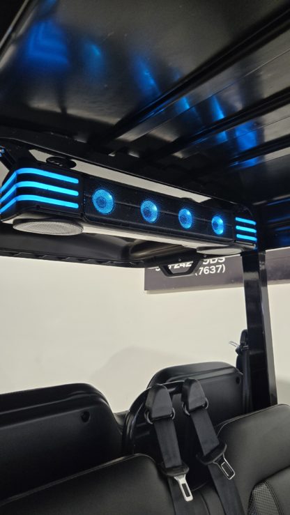 - Premium audio system with 8 high-fidelity speakers and party sound bar with color changing lights