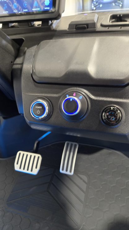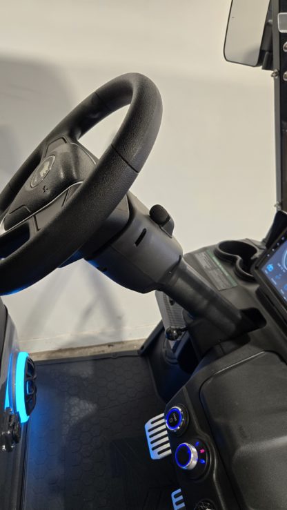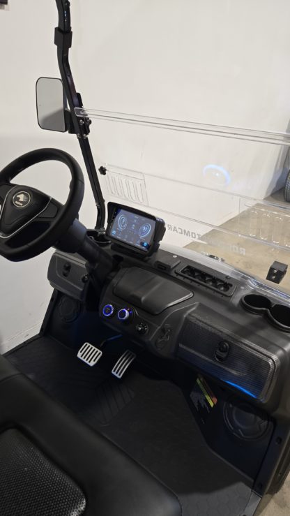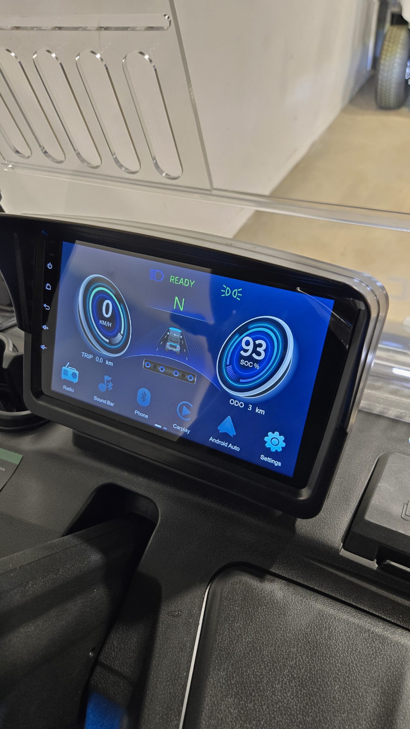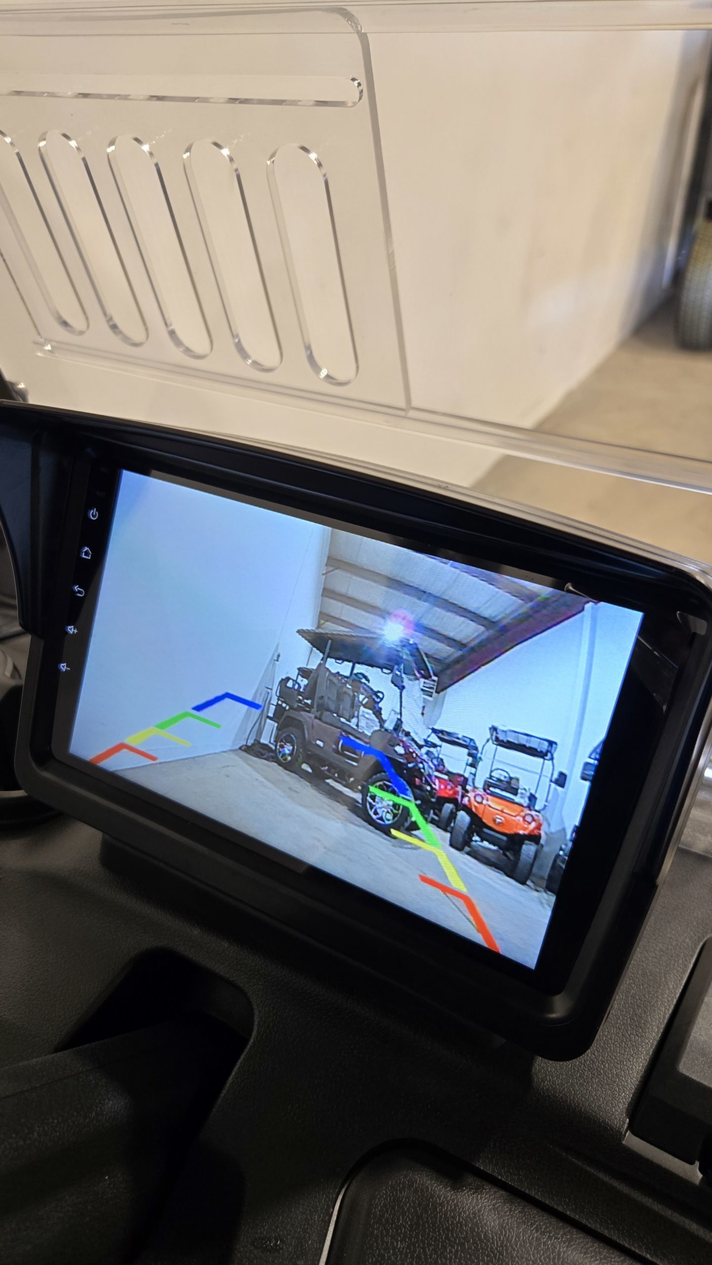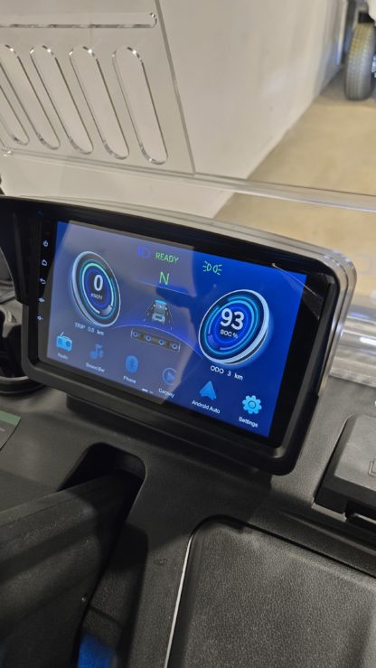- Advanced touchscreen with speedometer, video player, Bluetooth for calls and music, radio, back up camera and battery Status indicator