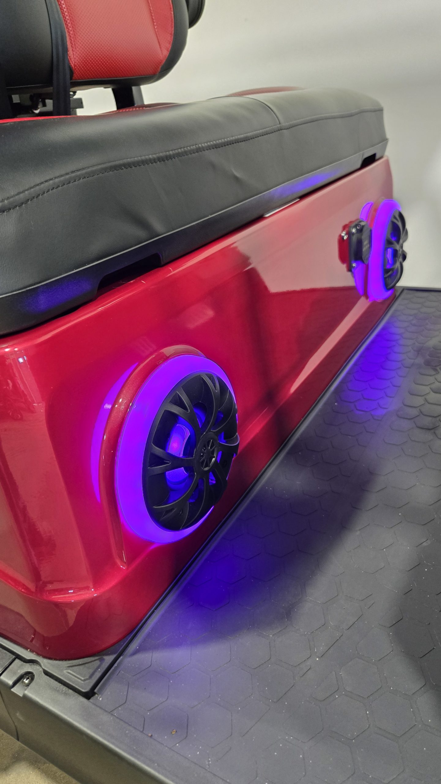 - Premium audio system with 8 high-fidelity speakers and party sound bar with color changing lights