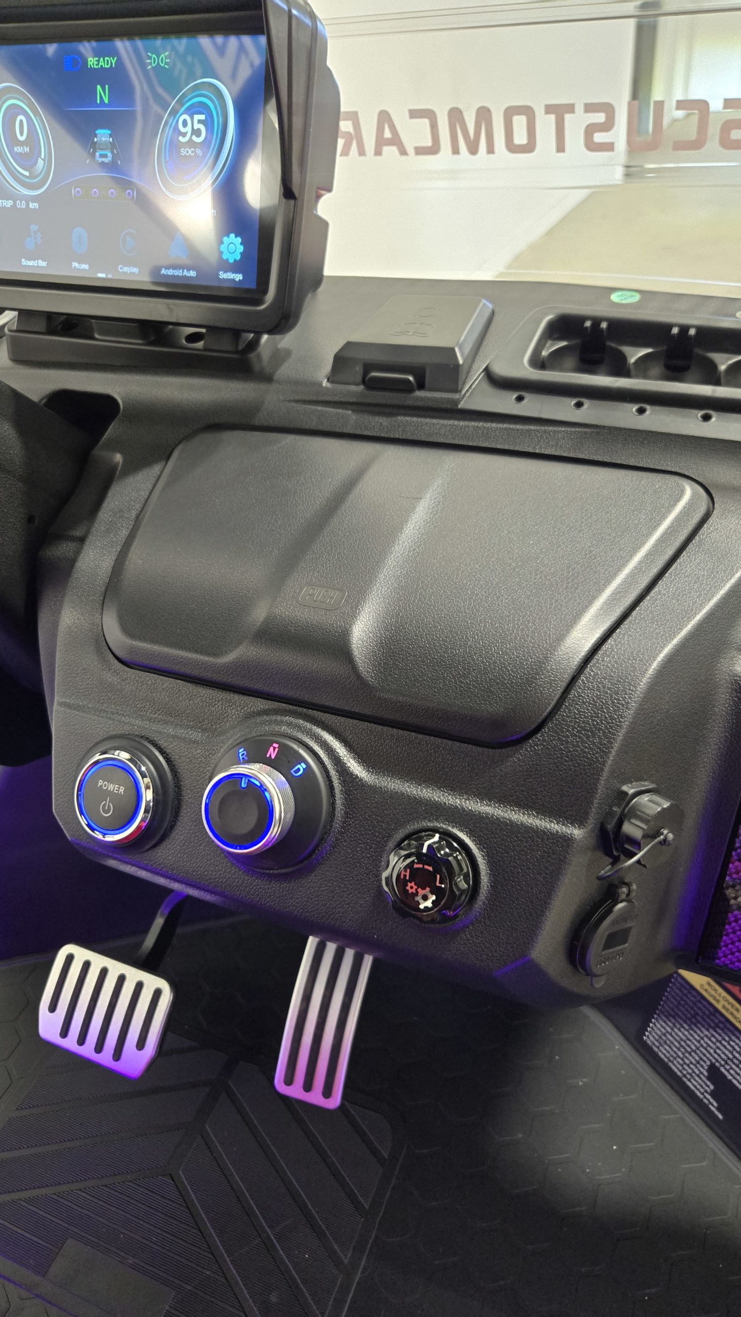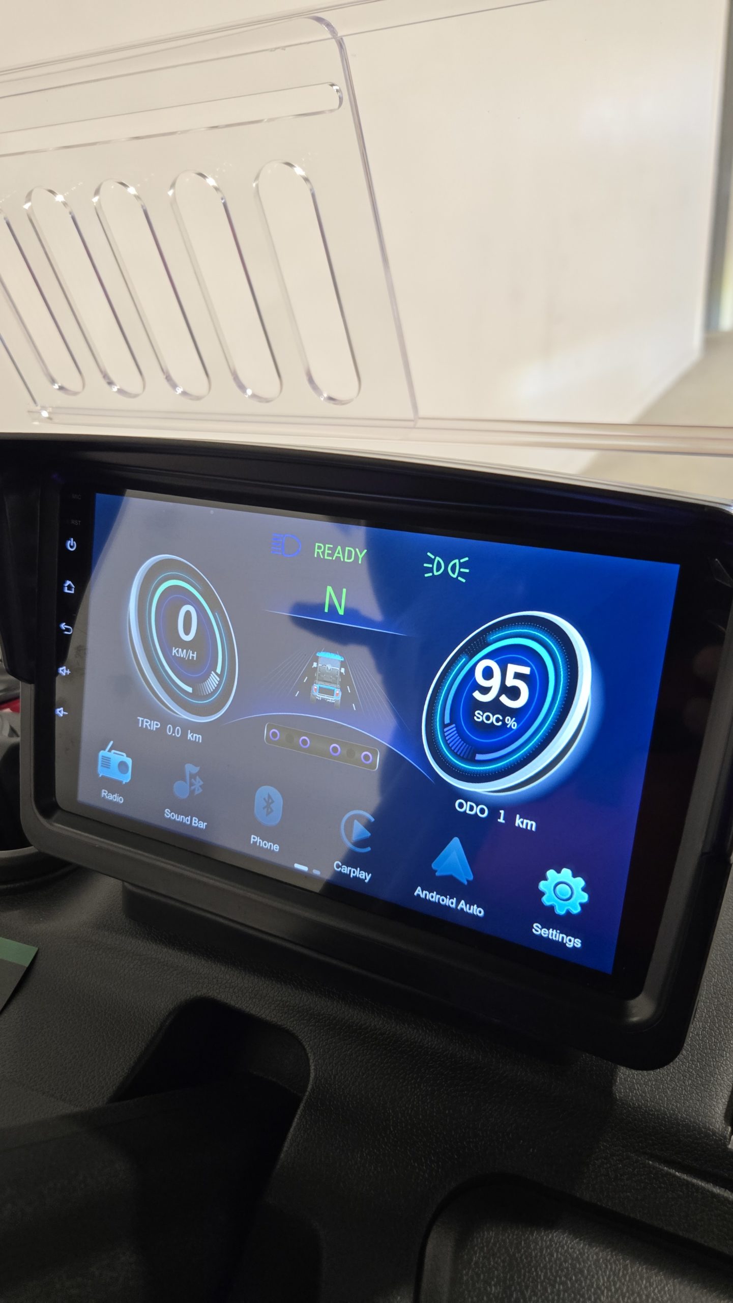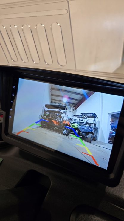 - Advanced touchscreen with speedometer, video player, Bluetooth for calls and music, radio, back up camera and battery Status indicator